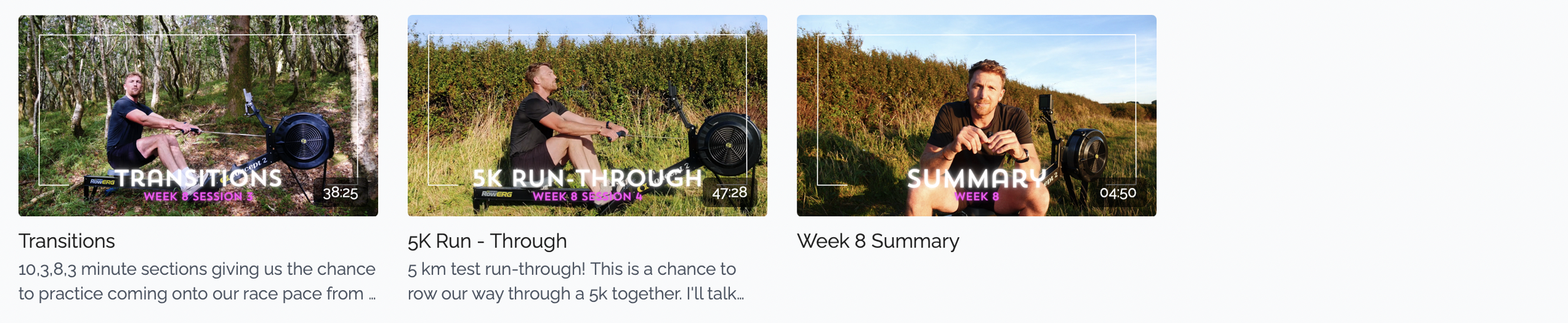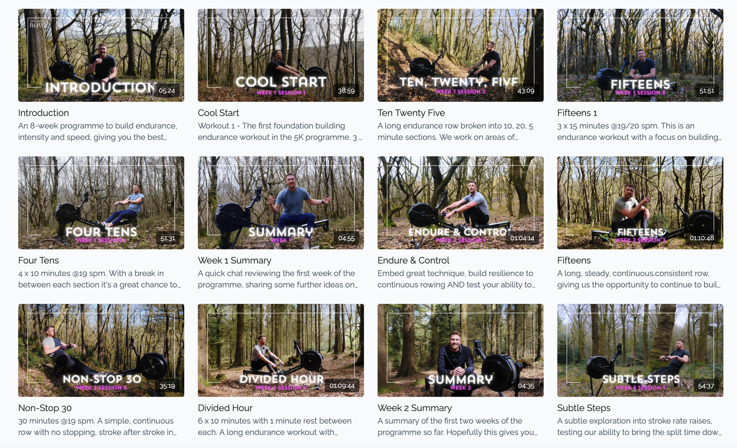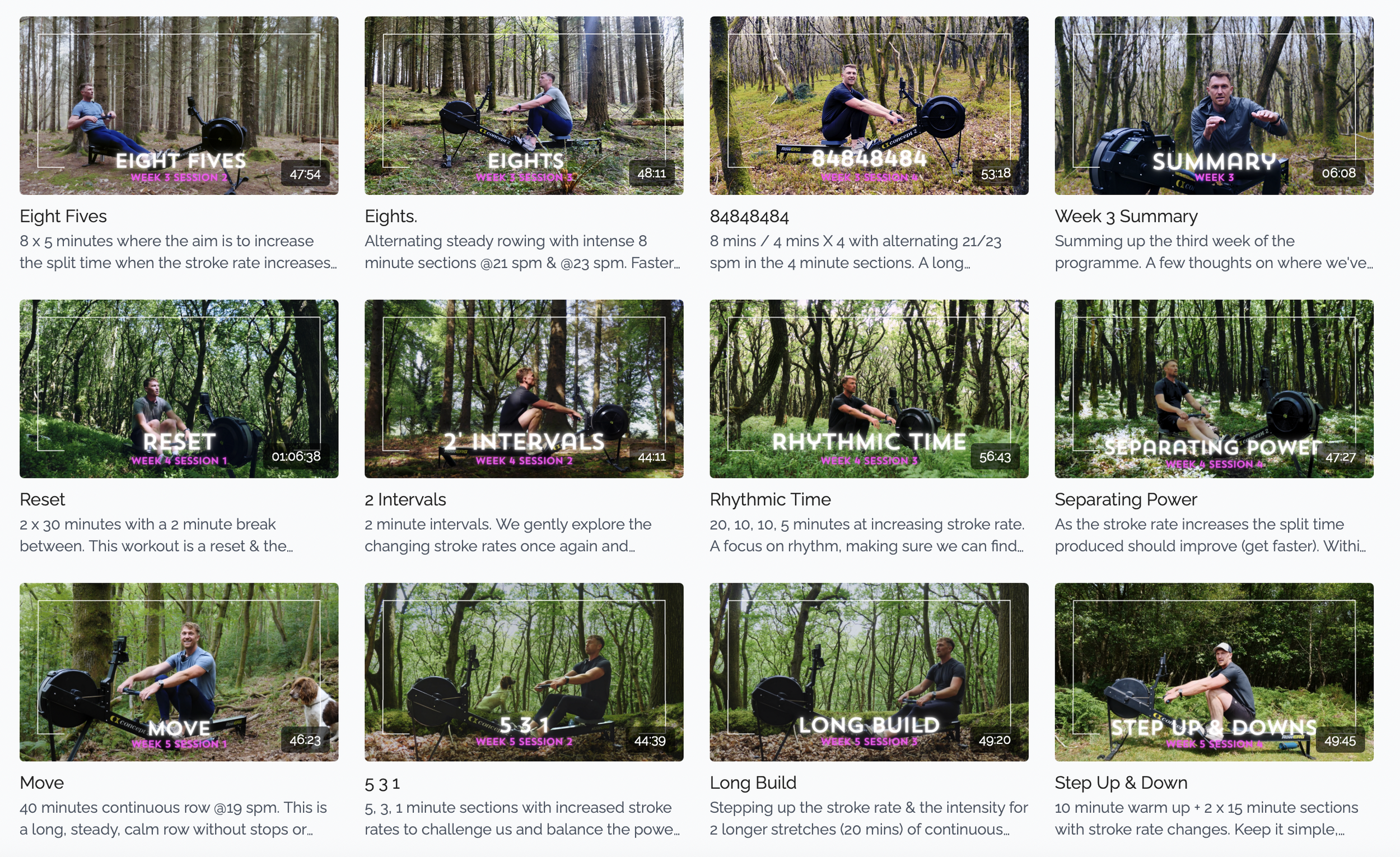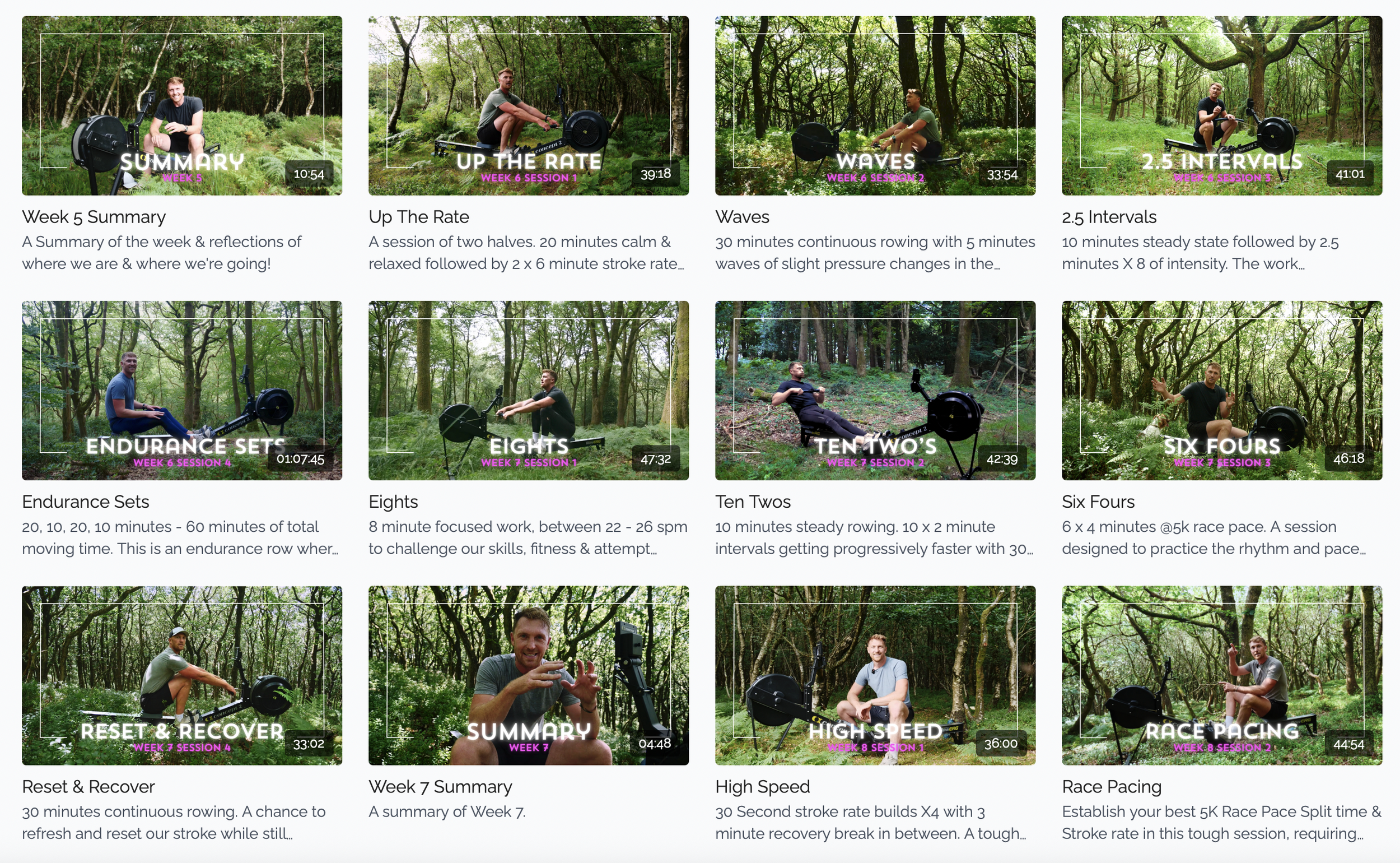 4 follow-along rowing sessions per week